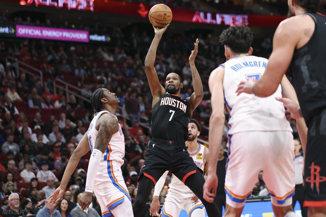 3、雷霆能投3分的球员确实比火箭多太多,火箭这边稳定的射手几乎没有,小贾、杜兰特、谢泼德的3分都不稳定,伊森又受伤,上半场火箭的3分只有8中2,产量与命中率都不过关。反观雷霆这边上半场20中8,多特、米切尔、以赛亚乔包括霍姆格伦都是稳定的3分点。即便火箭上半场领先了9个前场篮板球,但是比分上还落后。末节,亚历山大不在,雷霆又是靠角色球员的3分,取得领先。全场比赛,雷霆3分37中14,火箭3分21中5。